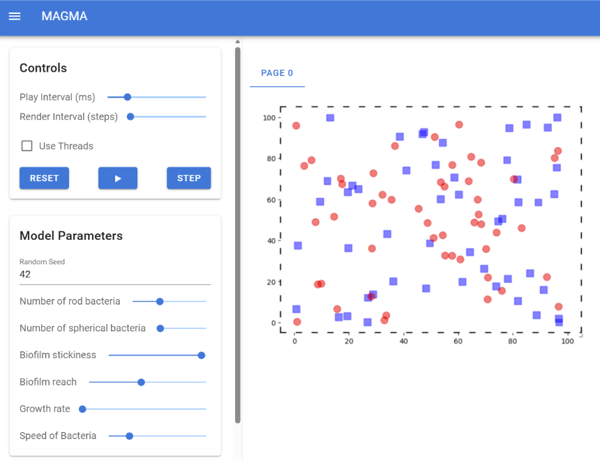 - Snapshot of an interactive ABM environment allowing multiple shapes for rapid hypothesis testing under different constraints and parameter settings.